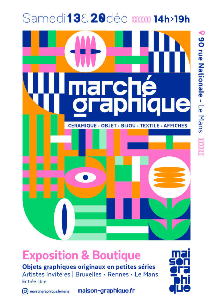 Pour sa première édition, Maison Graphique, située au 90 rue Nationale au Mans, se transforme en Marché Graphique les samedis 13 et 20 décembre de 14h à 19h.